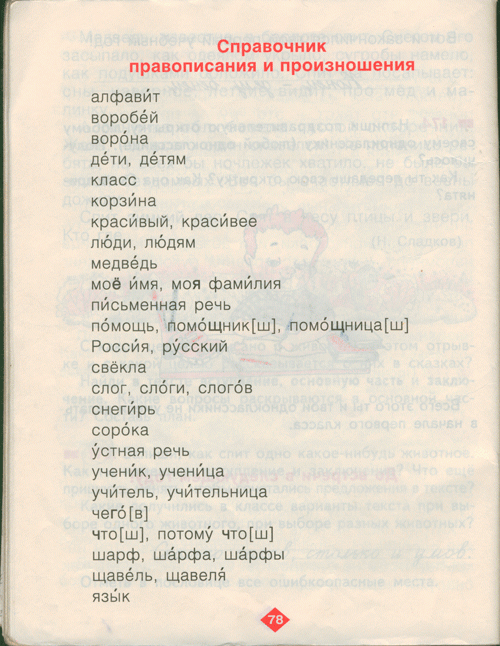 Русский язык 1 класс А.В. Полякова и Н.А. Песняева Используется в программах по системе Занкова. Субъективная оценка: [ ][ ][0][+][ ] Описание: Спорные моменты есть (упор на транскрипцию), но есть внятные задания, хорошее оформление. Русский язык 1 класс Нечаева Наталия Используется в программах по системе Занкова. Субъективная оценка: [ ][-][0][ ][ ] Оформление: низкокачественные (некрасивые) рисунки человека, который не умеет рисовать. Вёрстка безумна. Обложку делал фотошопер со стажем: Пример страницы: Вопросы: почему у малыша странный ирокез на голове? Как нужно произносить надпись в блоке "Говори правильно"? В учебнике очередные заигрывания с транскрипцией: Правила русского языка не выделены, и совершенно никак не оформлены: Найдите на этой странице правила ЖИ-ШИ. Можно подумать, что их нет. В данном учебнике вообще отсутсвуют правила русского языка. Есть только врезки "Запомни" со словом, которое нужно запомнить как пишется. Так же присутсвуют врезки с рассмотрением структуры сложных слов. Но нет главного - нет правил русского языка. Нет даже упоминаний о том, что в русском языке существуют правила. Математика Учебник Аргинской Аргинская Ирэн Ильинична, Бененсон Евгения Павловна Используется в программах по системе Занкова. Субъективная оценка: [-][-][0][ ][ ] Описание: несбалансированные задания, тотальное использование таблицы сложения, фактические ошибки в заданиях. Излишне сложная формулировка простых заданий. Пример: Математика: Учебник для 1 класса: Видим: две задачи 76 и 79 на работу с таблицей сложения. Задача 78. Даже взрослому не сразу понятно, что значит "Запиши все суммы натуральных чисел со значением 8". Речь идет о суммах со значением 8, или о натуральных числах со значением 8 (т.е. просто восьмерках)? Задачу 78 для школьника первого класса надо формулировать так: Найди пары натуральных чисел, сумма которых равна 8. Запиши эти пары в виде сумм, но только те, в которых первое слагаемое больше второго. В свете того, что идет разбирательство принципа "от перестановки мест слагаемых сумма не меняется", задание 78 выглядит странно. Ребенок должен стремиться показать, что при любых размещениях чисел, сумма будет одинакова. Вместо этого ребенка заставляют показать вполне определенные суммы, отобранные по критерию, не имеющему отношения к принципу аддитивности. Задача 81. Никак не обозначена точка в средней части отрезка АК. Вследствие чего неясно решение, неясно считать ли необзоначенную точку точкой. Еще страница: Общее впечатление от текста: авторы пишут муторно, не умеют выражать свои мысли. Этот текст не предназначен для ребенка первого класса. Лист с картинками: Вопросы. Почему ничего не написано возле узелков (что это за единица измерения)? Почему у человека с веревкой, который видимо, показывает единицу измерения "локоть", нет руковов, и следовательно неясна связь что локтями обычно мерили длину веревки (рука и рукав с надписью "локоть" другие, а возле человека с веревкой ничего не написано). Зачем человек внизу обнимает коня? А вот и таблица сложения, найдите, как говорится, закономерность: Признаться, я думал что таблица выглядит по-другому: Но здесь она такая. В любом случае, в первом классе ваш ребенок научится считать... до 20! Во всех примерах в учебнике нет выхода за число 20. Мнение мамы: Дебилоидная система, в частности по математике. Развивает