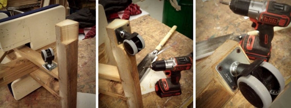 Для удобства перемещения, к основанию стула крепим колесики.