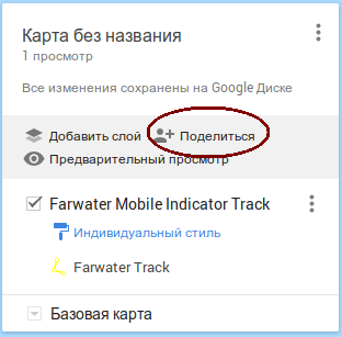 Создание треков через браузер на компьютере Для того, чтобы иметь возможность создавать треки из KML-файлов, необходимо наличие аккаунта Google. Вначале нужно перейти на сайт: Появится карта примерно того района, откуда совершен выход в интернет. Далее надо нажать на кнопку меню: Далее надо выбрать пункт "Мои места". Если входа в аккаунт Google еще не было произведено, произойдет запрос логина/пароля: Появится меню "Мои места", в нем надо переключиться на вкладку "Карты". Внизу будет кнопка "Создать карту" В результате откроется новое окно браузера с начальной картой: Чтобы задать осмысленное имя карты, можно кликнуть на заголовок "Карта без названия". Там можно задать название карты и её описание. Для создания трека надо нажать на кнопку "Импорт". Появится окно выбора файла: В данном окне можно нажать кнопку "Выберите файл на компьютере" и появится традиционное окно выбора файла: В результате будет создан трек из KML файла: Чтобы другой человек мог посмотреть данный трек, нужно нажать на кнопку "Поделиться": В открывшемся окне, для изменения прав доступа, нужно нажать пункт "Документ доступен только вам" - "Изменить": Откроется окно настроек прав доступа. Нужно выбрать пункт, например, "ВКЛ (для всех в Интернете)": После нажатия "Сохранить" данные права доступа применятся к карте с треком. Произойдет переход на предыдущее окно. В нем можно скопировать ссылку, по которой будет открываться только что созданный трек, или поделиться ссылкой через социалные инструменты (доступны GMail, Google Plus, FaceBook, Twitter): После всех этих действий карта с треком будет запомнена в аккаунте Google, и к ней можно всегда вернуться, нажав в основном меню "Мои места" - вкладка "Карты". В открываемом списке будут все карты, которые создавал пользователь. |