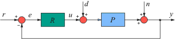 - объектом регулирования (от слова Process), r - управляющим воздействием или уставкой (reference), e - сигналом рассогласования или ошибки (error), u - выходной величиной регулятора, y - регулируемой величиной.