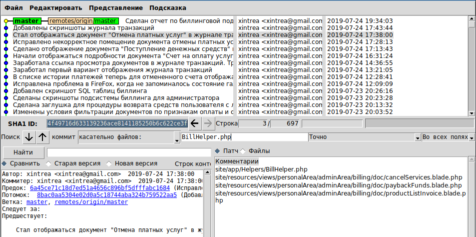 Вот теперь все рассказано о том, как искать файлы через интерфейс Gitk.