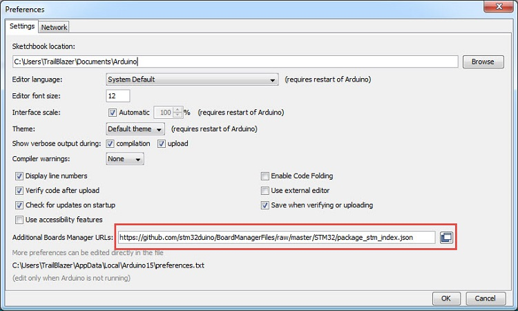 Настройка Arduino IDE для STM32F103C8T6 Blue PillЯ уверен, что у вас уже установлена Arduino IDE на вашем ПК (или ноутбуке). Если нет, то сначала установите его. После этого откройте вашу среду разработки Arduino и выберите «Файл» -> «Настройки». Вы найдете вкладку «URL-адреса менеджера дополнительных плат». Скопируйте следующую ссылку и вставьте ее туда. https://github.com/stm32duino/BoardManagerFiles/raw/master/STM32/package_stm_index.json Если у вас уже есть несколько URL-адресов в этом разделе, вы можете добавить больше, разделив их запятой. Если вы работали с платами ESP8266, то вы, возможно, уже знакомы с этим процессом. После добавления URL нажмите ОК. Теперь перейдите в меню Инструменты -> Плата -> Менеджер плат … и найдите «stm32». Вы получите такой результат, как «STM32 Cores by STMicroelectronics». Установите последнюю версию. На момент подготовки этого руководства последняя версия была 1.8.0. Это займет некоторое время, так как загрузит и установит некоторые необходимые файлы и инструменты. (Я сказал кое-что, потому что вам нужно скачать другой инструмент от STMicroelectronics, чтобы это работало). Теперь вы можете выбрать плату из Инструменты -> Плата -> Generic STM32F1 series. После того, как вы выберете эту плату, ниже появится куча опций для настройки типа вашей платы. Первый важный параметр — «Номер платы». Убедитесь, что выбран «BluePill F103C8». Другими важными опциями являются «Поддержка U (S) ART», установите как «Включено (generic «Serial»)» и «Метод загрузки», сделайте его как «STM32CubeProgrammer (Serial)». Вы можете оставить остальные опции в качестве значений по умолчанию. Загрузка STM32CubeProgrammerНа предыдущем шаге мы выбрали «STM32CubeProgrammer (Serial)» в качестве метода загрузки, но проблема в том, что этот инструмент не загружается и не устанавливается менеджером плат. Итак, мы должны установить его вручную. Для этого перейдите на официальную страницу загрузки STM32CubeProgrammer, предоставленную STMicroelectronics, по следующей ссылке. STM32CubeProgrammer Нажмите на опцию Get Software, и вы попадете на страницу входа / регистрации. Я предлагаю вам зарегистрироваться в STMicroelectronics с действительным адресом электронной почты. После регистрации вы можете войти и загрузить программное обеспечение. Будет загружен большой zip-файл (приблизительно 164 МБ для версии 2.3.0). Распакуйте zip-файл, и вы получите исполняемый файл Windows с именем «SetupSTM32CubeProgrammer-2.3.0». Дважды щелкните и продолжите установку. Убедитесь, что каталог установки установлен по умолчанию, и ничего не меняйте. Может потребоваться разрешение на установку некоторых драйверов для ST-Link. Вы можете предоставить необходимые разрешения. После завершения установки убедитесь, что в пути “C:\Program Files \ STMicroelectronics \ STM32Cube \ STM32CubeProgrammer \ bin” имеется исполняемый файл «STM32_Programmer_CLI». Если он присутствует, то вы можете продолжать. ПРИМЕЧАНИЕ. Это может быть либо Program Files, либо Program Files (x86) по указанному выше пути. На этом завершается настройка программного обеспечения для Arduino IDE для программирования STM32 Blue Pill. Давайте приступим к написанию небольшой программы для мигания светодиода и загрузки ее в нашу плату STM32 Blue Pill. Программа Blink для платы Blue Pill STM32F103C8T6Убедитесь, что вы внесли необходимые изменения в IDE Arduino, как указано в предыдущем разделе (выбор правильной платы и т. д.). Как только это будет сделано, установите соединение между программатором FTDI (т. е. с USB Serial Converter) и платой STM32, как указано выше. Теперь, прежде чем подключать FTDI к ПК, убедитесь, что плата гBlue Pill STM32 находится 