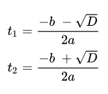 # условие может быть выполнено только при a > 0, а это означает что if t < 0: # при t < 0 оба решения отрицательны return Vector2.ZERO