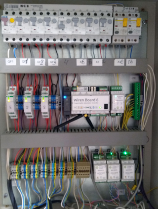 Но длительность этапов и требуемая мощность отличаются для разных культур. Освещение – профиль Александра. Он установил светильники LED FARM 80 с высокой эффективностью спектра освещения и хорошим светораспределением по всей области стандартной стеллажной системы. Сценарий солнечного освещения планировали реализовать на Home Assistant или OpenHAB. Но в итоге с помощью техподдержки Wiren Board всё написали на встроенном JavaScript-подобном движке правил. После этого начали тесты на стеллажных системах. Панель управления контроллером Выбранные светильники управляются через вход 0-10 В. Для управления ими сначала выбрали модуль, который не мог увести напряжение точно в 0, и минимальная светимость оставалась. Но потом мы выбрали модуль WB-MAO4 с ШИМ, и проблема полного отключения исчезла. После этого была ещё одна проблема. Сначала систему тестировали в теплице, куда поступал и естественный свет. Использовался универсальный датчик освещения, влажности и CO₂, освещенность с которого поступала в нашу модель, и при определённых условиях запускала цикл досветки. Когда мы перенесли систему в закрытое помещение, естественный рассвет не наступал, и включения светильников не происходило. В итоге, пришлось дорабатывать модель. В итоге для стеллажных систем было принято решение отвязаться от датчика освещенности. Но сам датчик теперь используется для контроля: по нему следят за облученностью и СО₂, выводят эти показатели на экран агронома, а также заносят в память контроллера. Оттуда их можно посмотреть в виде графика или скачать журнал на компьютер. Кстати, интересный нюанс. Чем больше растение, тем больше ему надо света. Если маленькие саженцы посадить на итоговые места, много света будет уходить мимо растений. Поэтому для повышения эффективности агрономы делят систему на участки с разной плотностью растений. И по мере роста пересаживают растения, увеличивая расстояние между ними. В рассадном отделении растения расположены вплотную друг к другу. Во взрослом отделении расстояние между ними будет увеличено. Демонстрационная установка, на которой показываются возможности автоматизации. На данный момент выращивается салат, но потом основными культурами станут картофель и голубика Автоматизация полива Следующий этап – автоматизация полива. Полив должен осуществляться не только днём, но и ночью по установленному времени, которое определяет агроном. В среднем оптимальный режим для растений – 10-15 поливов в сутки, то есть раз в несколько часов длительностью несколько минут. Время полива может меняться в зависимости от влажности и насыщенности почвы. Сделать полив по расписанию просто. Достаточно в нужное время замыкать контакт модуля реле, который включает насос. И через заданное время полива размыкать. Следующая итерация – мониторинг влажности почвы и полив при определённых параметрах. Были закуплены китайские датчики почвы с определением содержания солей (на внутреннем рынке таких датчиков нет). Но пришло немного не то, что заказывали: вместо датчиков с выходом RS-485 пришли устройства с выходом 0-10 В. Мы смогли подключить их через адаптер. Но когда начали сравнивать их показания с контрольным прибором Grodan, оказалось, что датчики давали сильную погрешность. В итоге их не получилось откалибровать, и мы решили отказаться от привязки полива к ним из-за низк