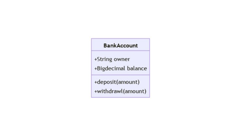 Есть два способа задать поля класса. Результаты рендеринга одинаковые, но второй способ занимает меньше места и требует меньше кода: classDiagram class BankAccount BankAccount : +String owner BankAccount : +Bigdecimal balance BankAccount : +deposit(amount) BankAccount : +withdrawl(amount) Или classDiagram class BankAccount{ +String owner +BigDecimal balance +deposit(amount) +withdrawl(amount) }