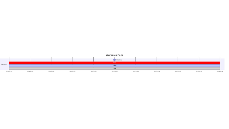 gantt title Диаграмма Ганта dateFormat YYYY-MM-DD section Секция 1 Milestone :milestone, a1, 2014-01-01, 15d Crit :crit, a2, 2014-01-01, 15d Active :active, a3, 2014-01-01, 15d Done :done, a4, 2014-01-01, 15d