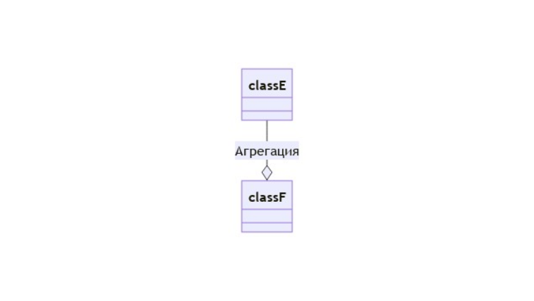 При желании можно явно указать вид связи в виде текста: classE --o classF : Агрегация