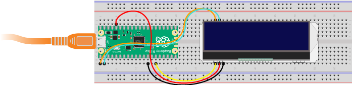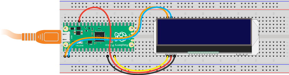 # Создаём I²C соединение i2c=I2C(0, scl=Pin(1), sda=Pin(0), freq=100000) # Создаём объект для работы с дисплеем lcd = ST7032(i2c)
