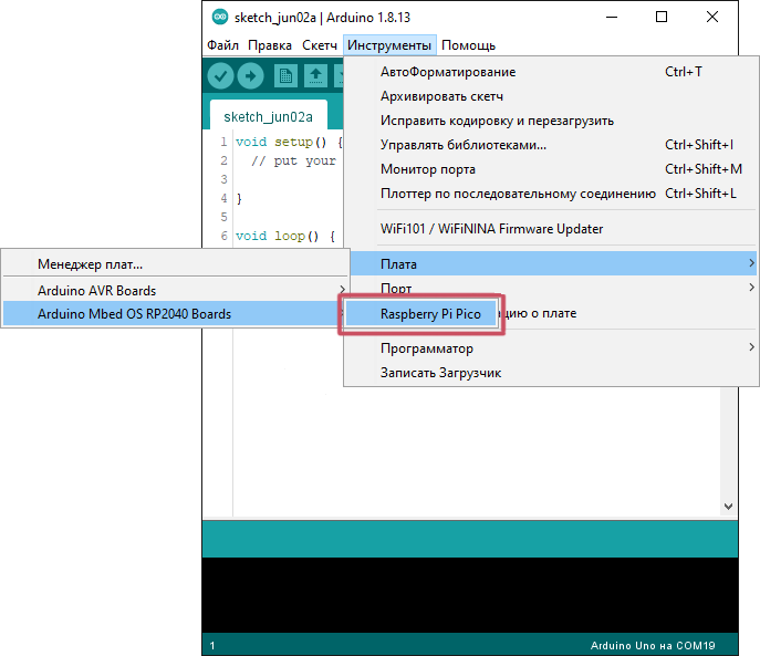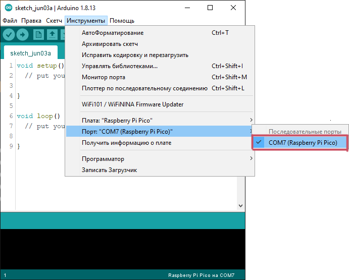 Рассмотрим программирование Raspberry Pi Pico на языке C++ в среде Arduino IDE с помощью ПК на OS Windows.