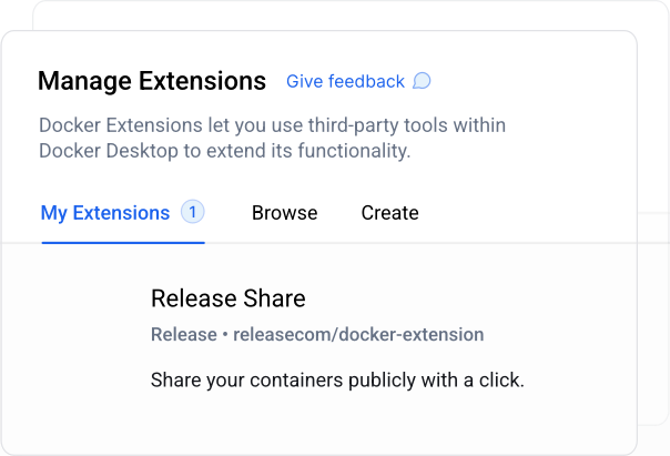 Повышение производительности и эффективности для сокращения времени развертывания Docker Desktop улучшает ваш опыт разработки, предлагая мощную, удобную платформу для управления контейнерами. Полностью интегрированный с вашими инструментами разработки, он упрощает развертывание контейнеров и ускоряет эффективность вашего рабочего процесса. Движок Докера Мощная среда выполнения контейнера Docker Engine обеспечивает высокую производительность и надежность ваших контейнерных приложений. Он предоставляет базовую технологию для создания и запуска контейнеров, гарантируя эффективные и масштабируемые операции. Интерфейс командной строки Docker Гибкий интерфейс командной строки Docker CLI предлагает надежный инструмент командной строки для точного управления вашими контейнерами. Выполняйте сложные команды, автоматизируйте задачи и легко интегрируйте Docker в ваши рабочие процессы. Docker-композитор Оптимизированное управление несколькими контейнерами Docker Compose упрощает процесс управления многоконтейнерными приложениями. Определяйте и запускайте сложные настройки с помощью одного файла конфигурации, что упрощает развертывание и масштабирование ваших приложений. Сборка Docker Упрощенное строительство контейнеров Docker Build — это мощный инструмент в Docker Desktop, который упрощает процесс создания образов контейнеров. Он позволяет вам упаковывать и собирать ваш код для отправки куда угодно, при этом легко интегрируя его в ваш конвейер разработки. Docker-кубернетес Встроенная оркестровка контейнеров Docker Kubernetes обеспечивает встроенную поддержку Kubernetes в Docker Desktop, что позволяет вам эффективно оркестровать и управлять контейнерами. Поддерживая как многоузловые кластеры, так и версии, выбранные разработчиками, Docker Kubernetes упрощает локальное развертывание, масштабирование, тестирование и управление контейнерными приложениями без необходимости во внешнем кластере. Управление громкостью Эффективное управление данными Docker Volumes предоставляет надежное решение для управления и совместного использования данных контейнеров. Эта функция позволяет вам легко и безопасно управлять томами для целей резервного копирования, совместного использования или миграции, улучшая управление данными и переносимость. Синхронизированные общие файлы Бесперебойная синхронизация данных Синхронизированные общие файлы позволяют в режиме реального времени обмениваться файлами и синхронизировать их между вашим хостом и контейнерами. Эта функция гарантирует, что обновления файлов мгновенно отражаются на хосте и контейнере, улучшая совместную работу и согласованность. Отладка Docker Расширенные инструменты устранения неполадок Docker Debug предоставляет комплексные инструменты для диагностики и решения проблем в ваших контейнерах и образах. Эта команда CLI позволяет вам создавать и работать с тонкими контейнерами, которые в противном случае было бы трудно отлаживать. Защищенный рабочий стол Docker Улучшенная изоляция контейнера Hardened Docker Desktop включает расширенные функции безопасности для защиты вашей среды разработки. Благодаря улучшенной изоляции контейнеров, управлению доступом к реестру и образам, а также соответствию отраслевому стандарту вы можете уверенно создавать и развертывать безопасные приложения. Поддержка VDI Интеграция виртуального рабочего стола Поддержк